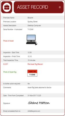 Completed reports documents can be viewed, emailed and printed as branded pdf’s from mobile and desktop devices.